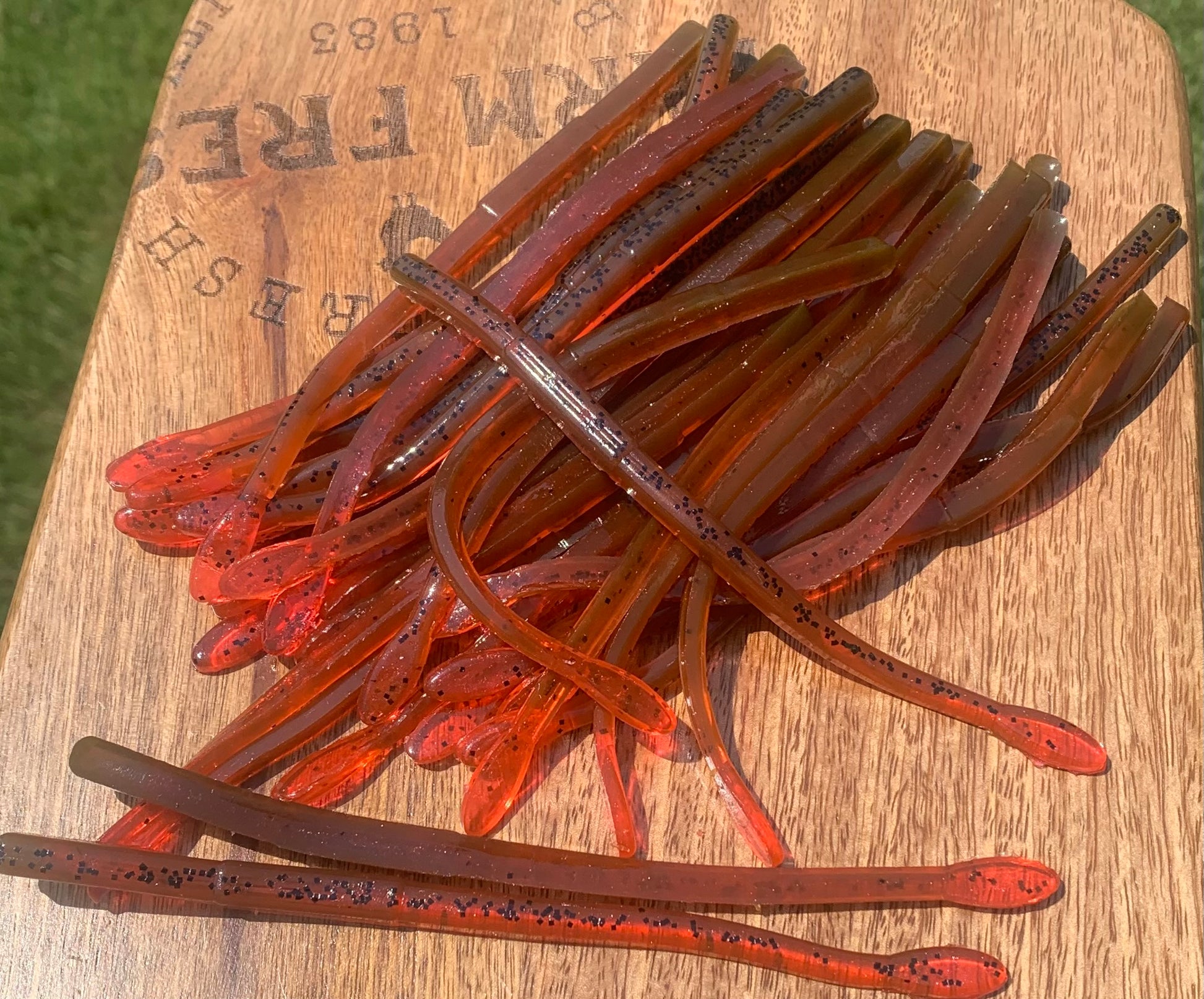 6” finesse worm robo style flat on bottom and round on top. Handpoured bait made without salt and floats. Qty 10 per bag