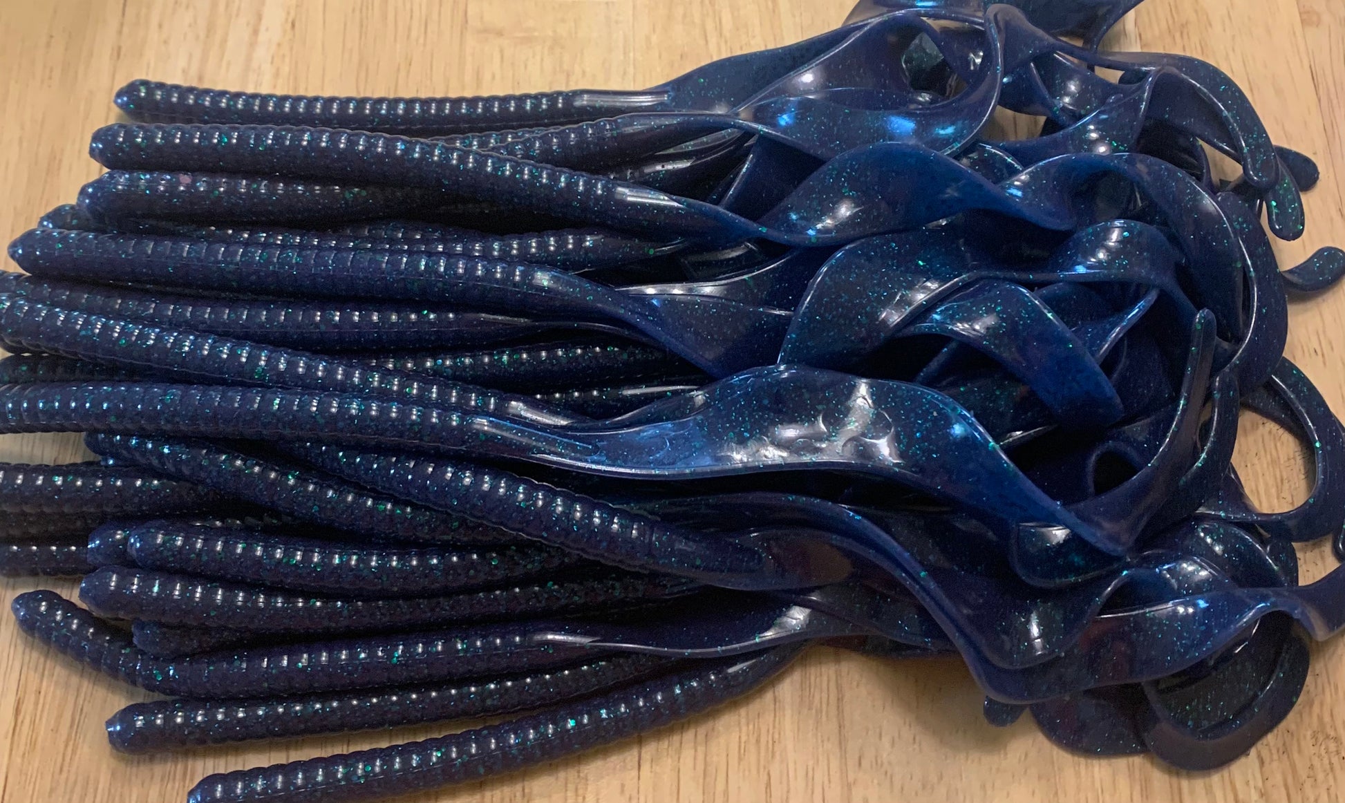 10 1/2” ribbon style floating worm made with no salt qty 8 per bag. Head will sink slowly with a 4/0 hook but tail stands up