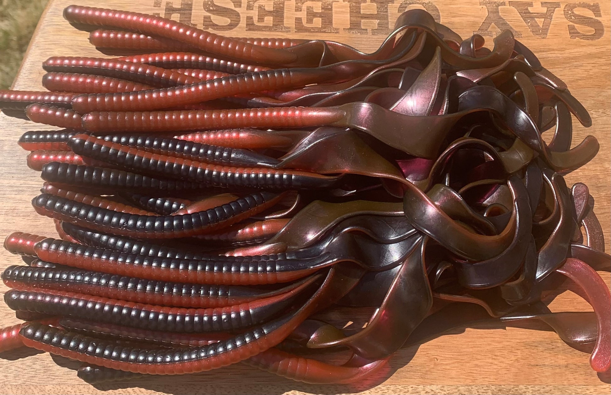 10 1/2” ribbon style floating worm made with no salt qty 8 per bag. This bait is made with a floating additive which makes it very bouyant