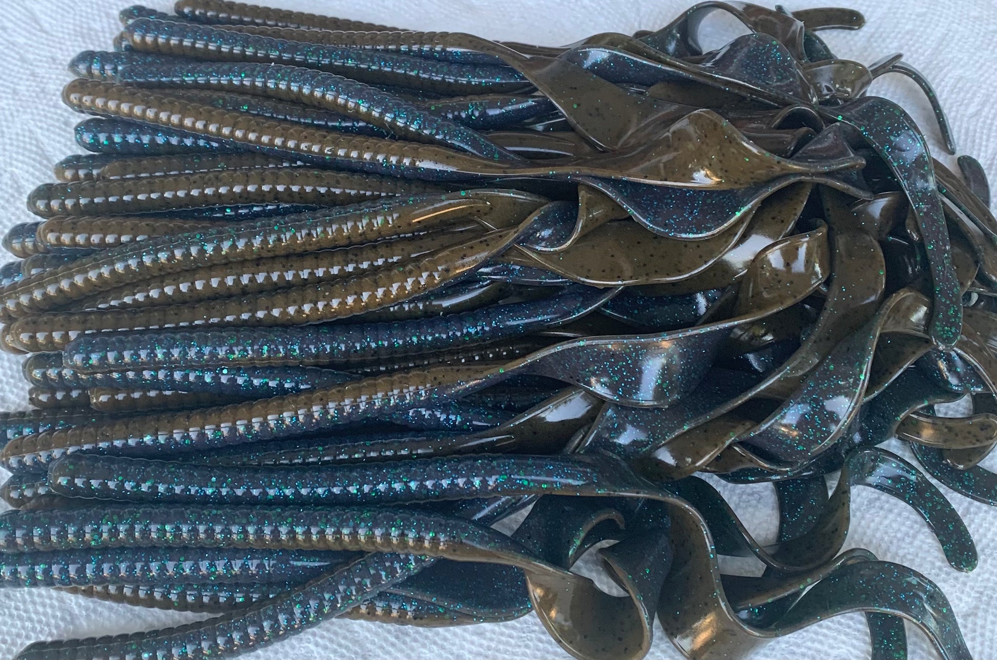 10 1/2” ribbon style floating worm made with no salt qty 8 per bag. This bait floats