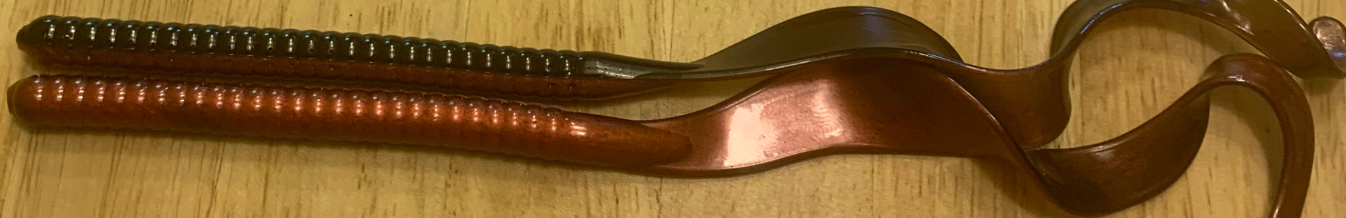 10 1/2” ribbon style worm qty 8 per bag. Color has some small bleeding for affect